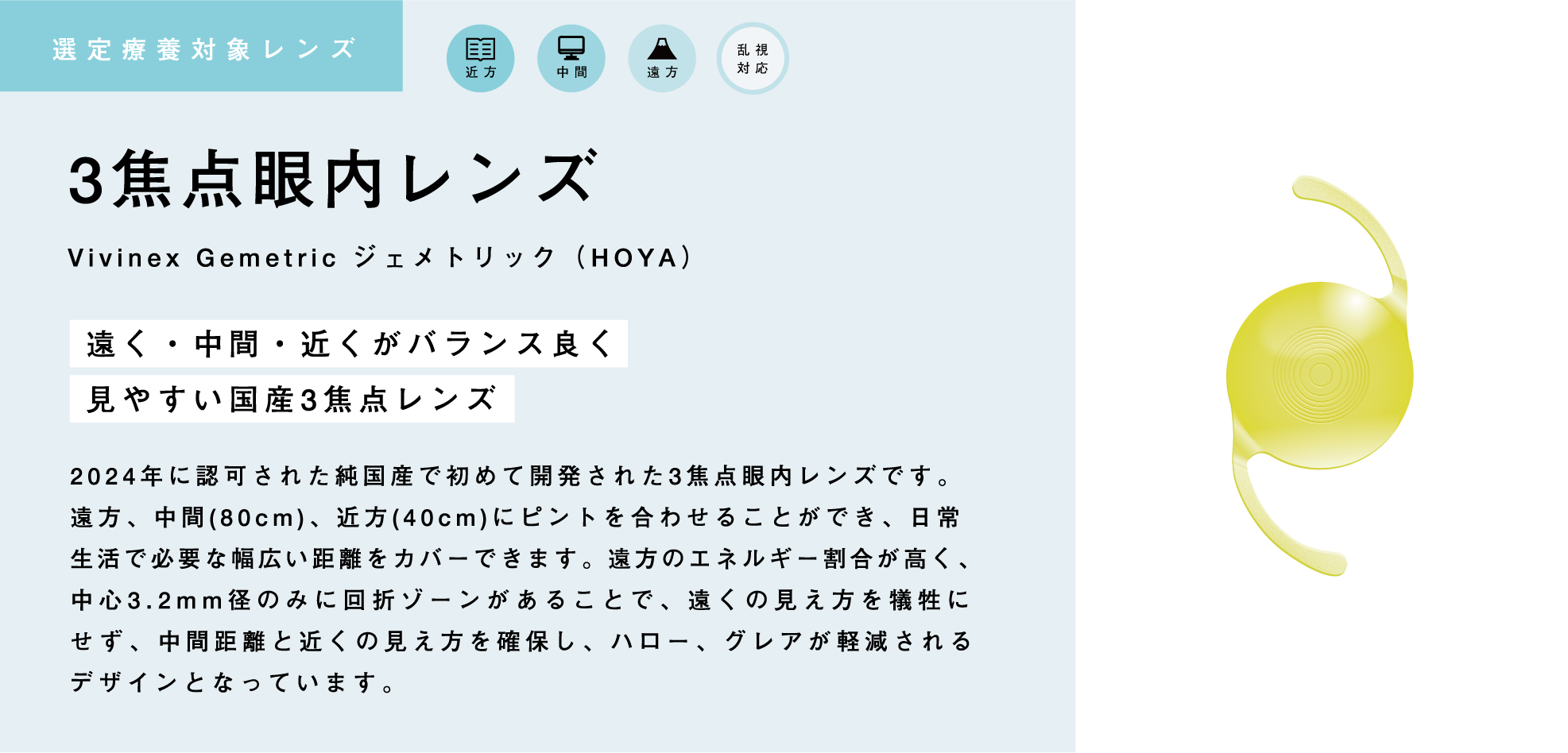 当院では、日本で認可されている多焦点眼内レンズより、