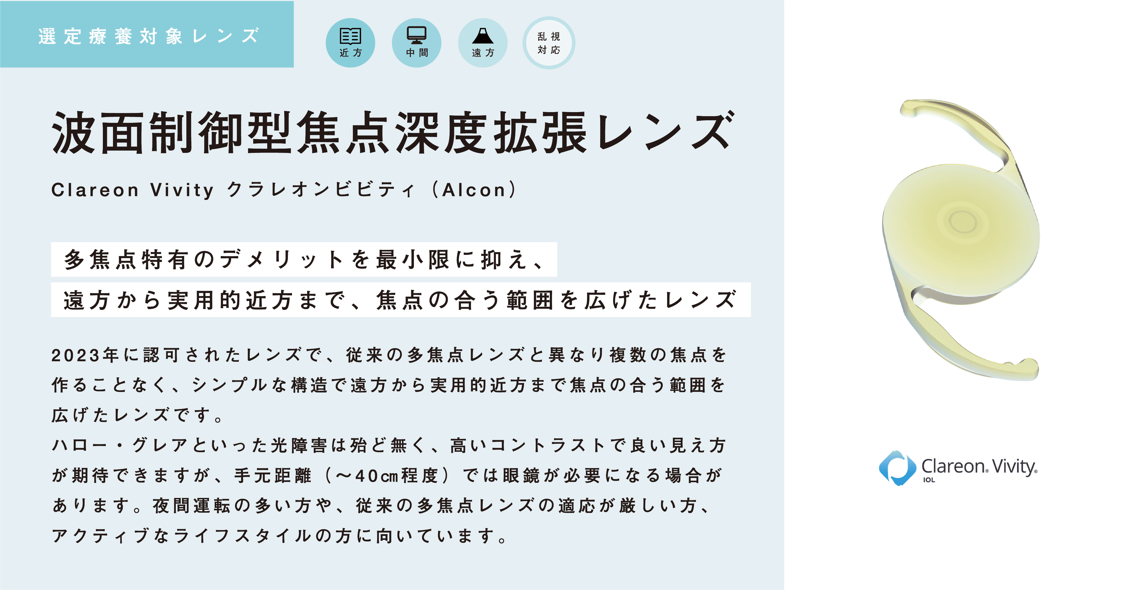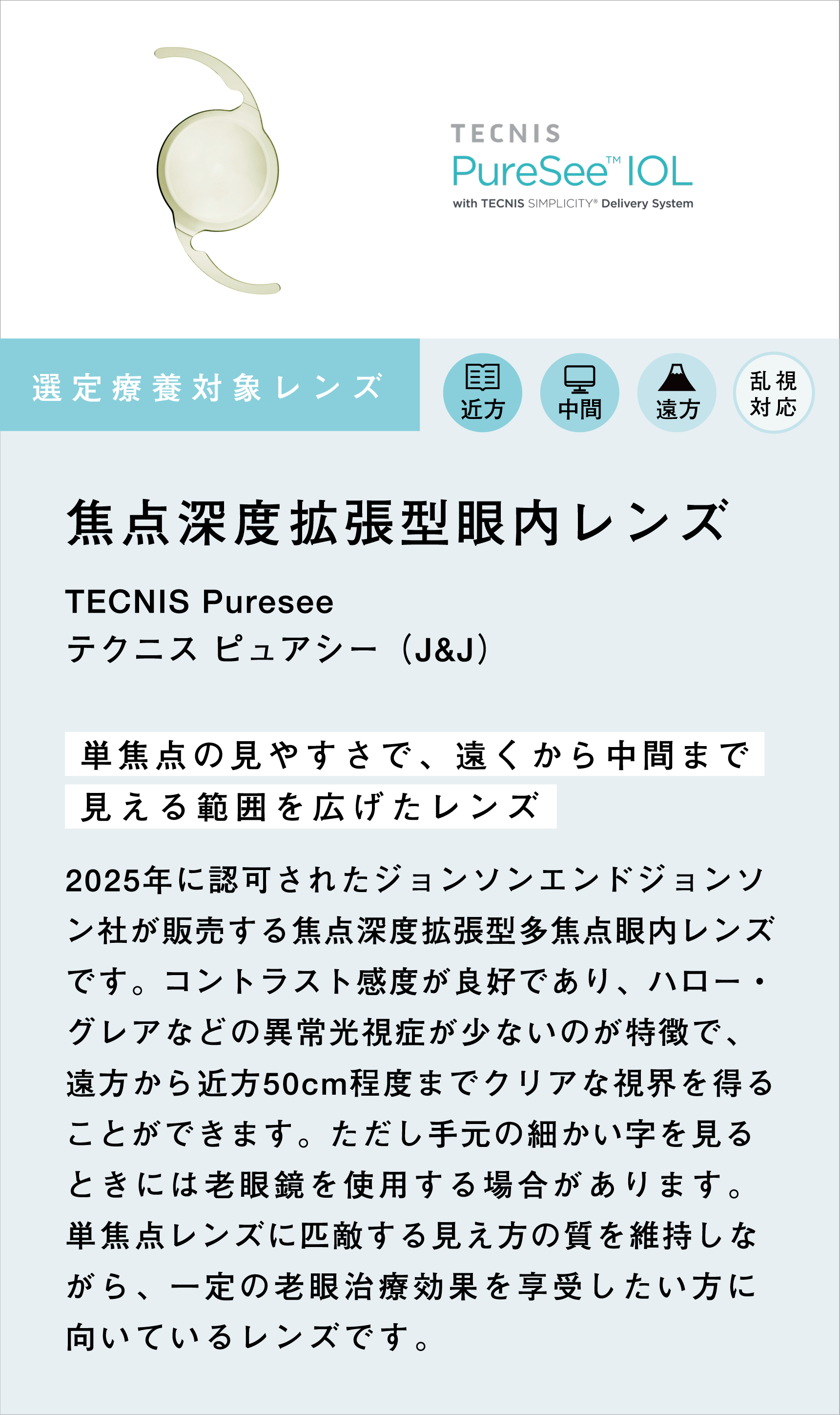 単焦点眼内レンズを選択された方は、医療保険が適用されます。